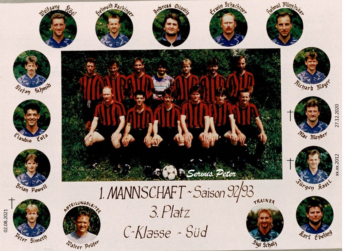 In der Saison 1992/1993 belegten wir den 3. Platz in der C-Klasse Süd und mussten zum Religationsspiel gegen den FC Rockolding nach Irsching, das leider verloren wurde.